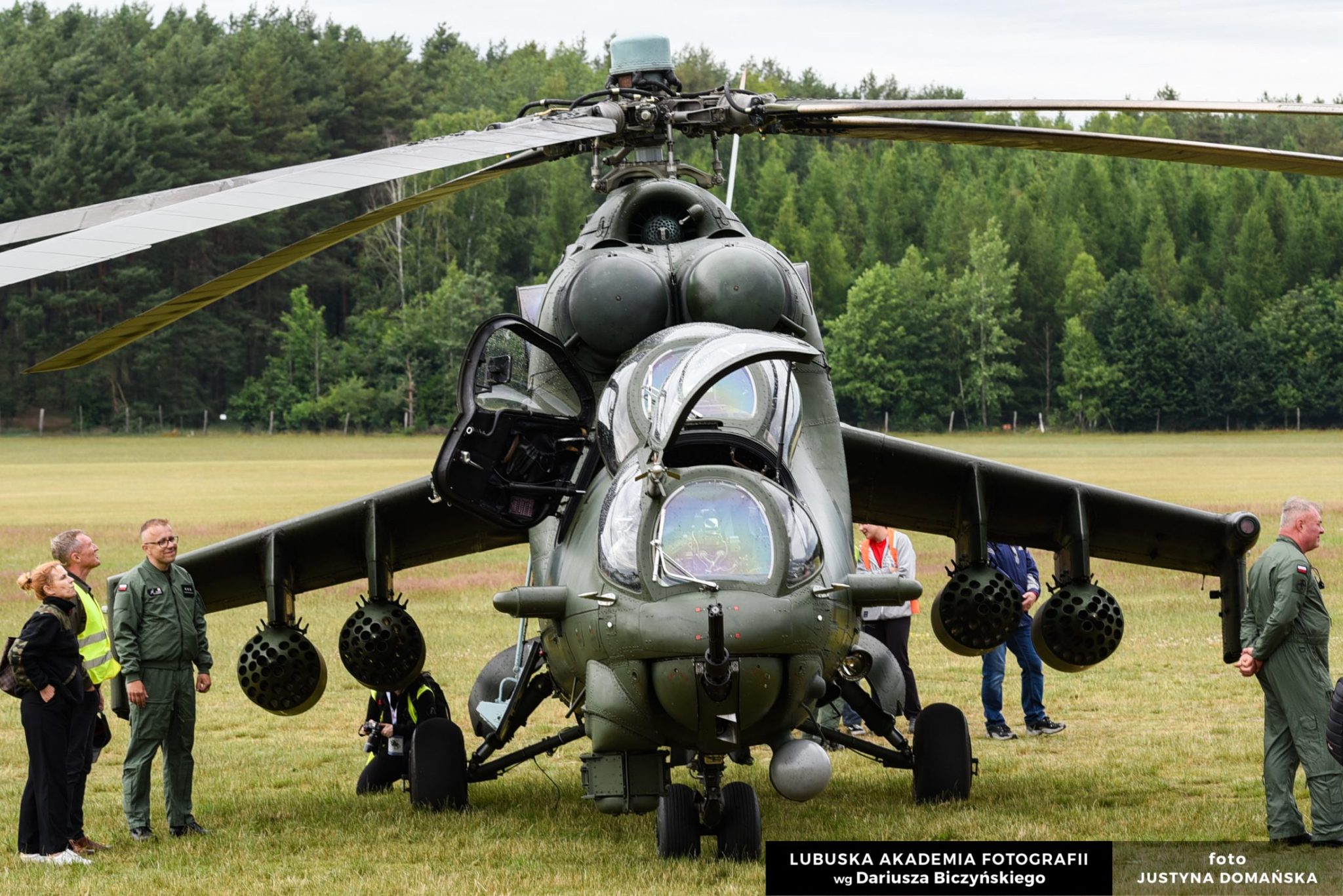 Wojskowe maszyny i sprzęt ciężki na II Światowym Zlocie Śmigłowców/ Miedzynarodowych Zawodach Śmigłowcowych FAI, Zainteresowanie Wydarzeniem było ogromne i to zarówno ze strony osób chcących zobaczyć zawody śmigłowcowe oraz statyczną wystawę sprzętów latających i jeżdżących jak i ze strony właścicieli śmigłowców i pilotów. Organizatorzy w profesjonalny sposób zabezpieczyli teren lotniska, zapewnili bezpłatną komunikację miejską kursującą z miejsc przeznaczonych do zaparkowania samochodów. Widoczna była synergia pomiędzy zaangażowanymi służbami: strażą miejską, policją, służbą informacyjną, strażą leśną, straża pożarną, wojskiem. Goście kierowani byli przez licznie rozstawionych funkcjonariuszy porządkowych w miejsca ekspozycji, rozrywki, zawodów, gastronomii. Idących uczestników częstowano darmowymi lodami. Wydarzenie zorganizowane pod hasłem ‚Śmigłowiec w służbie Państwa’ zgromadziło miłośników militariów, służb mundurowych, latających maszyn i sportu lotniczego. Wśród wyeksponowanych śmigłowców można było zobaczyć taki perełki jak: Mi-14, Mi- 8, Mi- 17, W-3/WA, Mi-2, Mi-24; W-3PL, SW-4, SH-2G, mnóstwo Robinsonów, Belle, Gimbal. Sprzęty wojskowe: w tym min. Krab, Rosomak, Leopard, wojskowy symulator skoków spadochronowych, stoisko min. Agencji Mienia Wojskowego, stoisko rekrutacyjne Wojska Polskiego.
